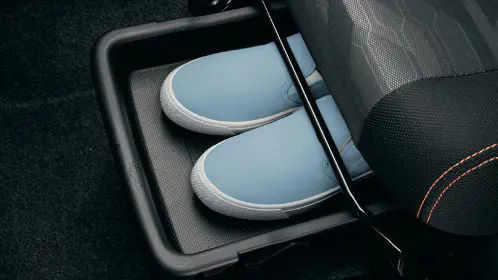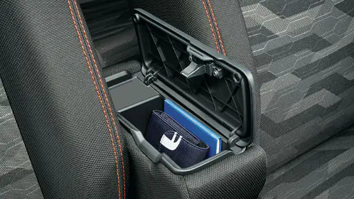 「G」「Gターボ」にはボックス付フロントセンターアームレストと助手席シートアンダートレイが標準装備されます。