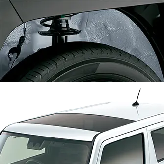 「X」「Xターボ」ではホイールハウス内やルーフヘッダーがボディ同色であるのに対し、「G」「Gターボ」ではブラックアウトされているほか、「G」「Gターボ」にはルーフレールが装着されます。