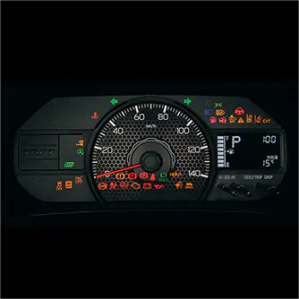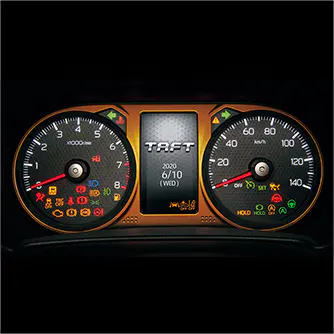 「X」「Xターボ」では単眼メーター、「G」「Gターボ」ではタコメーター付きの2眼メーターを採用。「G」「Gターボ」のメーターパネルにはインパネと同じくオレンジの加飾が施されます。