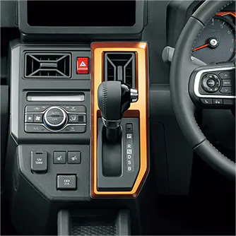 「G」「Gターボ」では本革巻のシフトノブを採用。「G」「Gターボ」のインパネセンターシフトにはメッキ加飾とオレンジのアクセントカラーも加わり、より華やかな見た目となります。